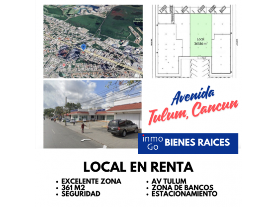 Se renta local comercial en una de las zonas más turísticas de México, en la hermosa ciudad de Cancún, Quintana Roo. Este local se encuentra en un área privilegiada, con fácil acceso desde la carretera principal y cercano a centros comerciales y zonas residenciales, lo que garantiza un alto tráfico de potenciales clientes.