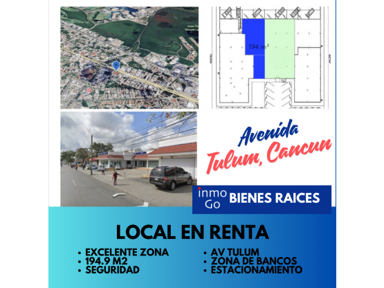 Bienvenido a este impresionante local para alquiler ubicado en Cancún, Quintana Roo, una de las zonas más hermosas y turísticas de México. Con una amplia área terreno y construida de 194.90 M2 cada una, y un área privada de igual medida, este local ofrece innumerables posibilidades para su uso comercial. Además, cuenta con 4 estacionamientos disponibles para el uso exclusivo de tu negocio y tus clientes.